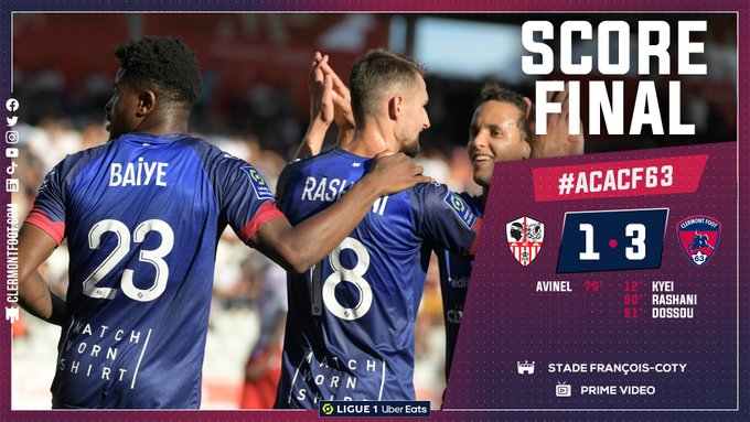 ⏱ C'est terminé à Ajaccio où le Clermont Foot 63 s'impose au bout du suspense grâce à des réalisations d'Elbasan Rashani et Jodel Dossou dans les dernières minutes 🌋🌋🌋 #ACACF63 1-3 👊🔴🔵