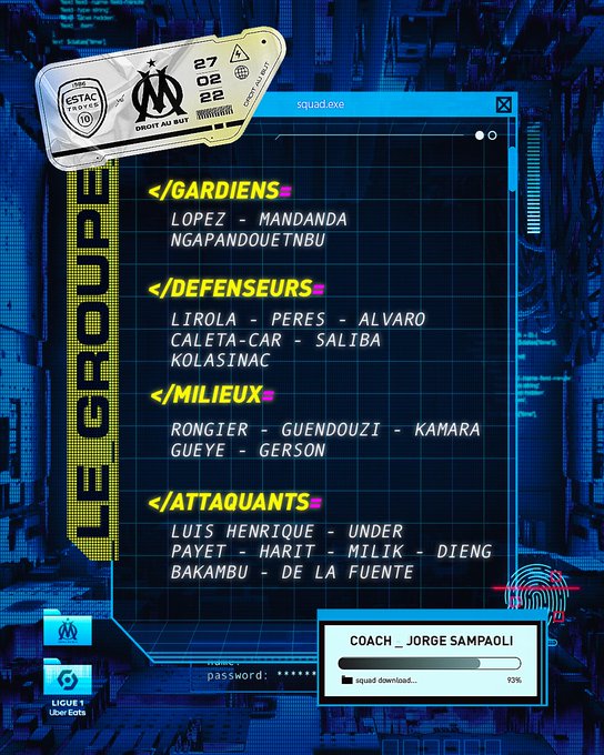 👥 𝙇𝙚 𝙜𝙧𝙤𝙪𝙥𝙚 convoqué par Bruno Irles pour la rencontre face à l'OM dans le cadre de la J26 de Ligue 1 Uber Eats, demain à 17h05 au Stade de l'Aube ! #ESTACOM #TeamEstac 🔵⚪