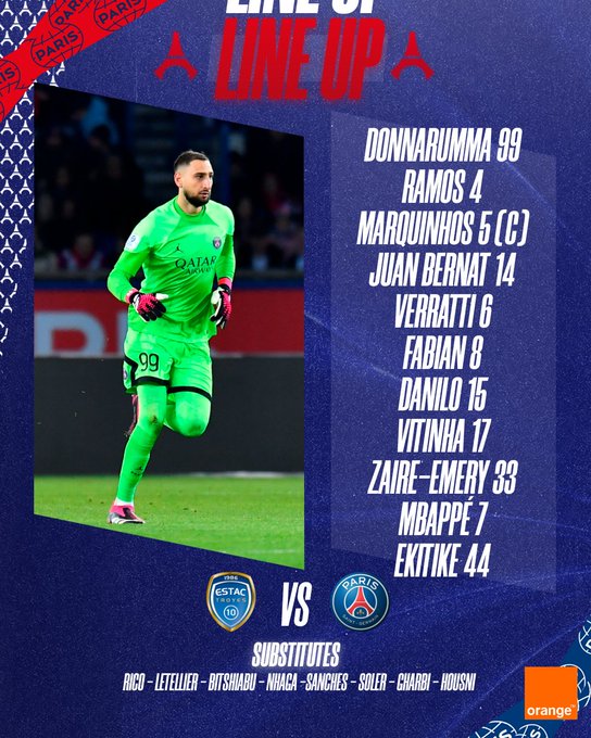 👥 Voici les 1️⃣1️⃣ joueurs qui débuteront la rencontre face au PSG ! 💥 #ESTACPSG 🔵⚪️