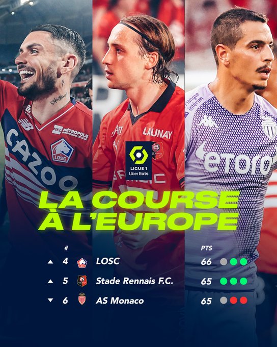Concernant les autres matchs de cette ultime journée, la course pour l’Europe fera rage entre Lille (vs Troyes sur Amazon Prime Vidéo), Rennes (vs Brest sur Canal+ Foot) et Monaco (vs Toulouse sur Amazon Prime Vidéo). Tout comme la lutte pour le maintien, qui se disputera entre Auxerre, qui recevra Lens, et Nantes, qui devra l’emporter contre Angers en espérant un faux pas de l’AJA pour rester en L1. Deux rencontres à suivre sur le multiplex d’Amazon.