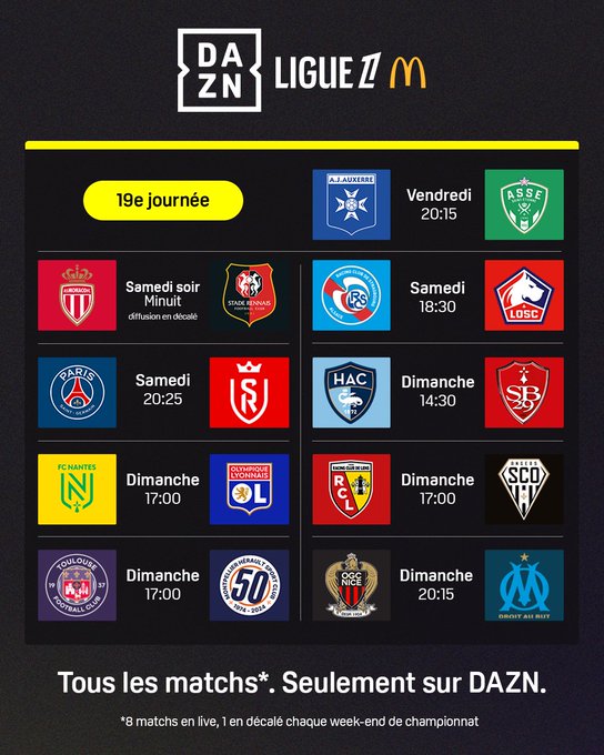 Ligue 1 sont liés. Dans le contrat signé par DAZN pour diffuser le championnat de France depuis l’été 2024, figure en effet une clause qui autorise la plateforme britannique à négocier sa sortie dès le mois de décembre 2025 si le chiffre de 1,5 million d’abonnés n’est pas atteint à ce moment là, un an et demi après l’entrée en vigueur du contrat. Avec un chiffre annoncé de 500.000 abonnés, le « Netflix du Sport » peut préparer les cartons, et ce malgré des offres promotionnelles et du contenu amélioré depuis les débuts. Spécialiste des médias pour RMC, Arthur Perrot précise selon ses sources que DAZN ne croit déjà plus en un net regain d’abonnés. Des études ont démontré que la chaine sportive avait déjà attiré 90 % des abonnés potentiels, et qu’une montée en flèche des nouveaux venus n’est pas envisagée. Néanmoins, malgré quelques fuites, les chiffres officiels de DAZN en France n’ont toujours pas été révélés, et ils pourraient quand même avoir passé la barre des 500.000 abonnés avec les récentes offres.