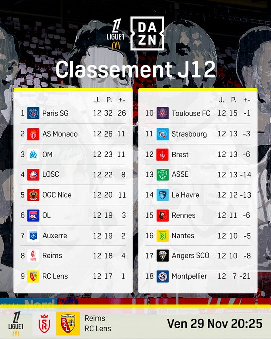 📊 | Le classement à l'issue de cette 12e journée. 🔝💯