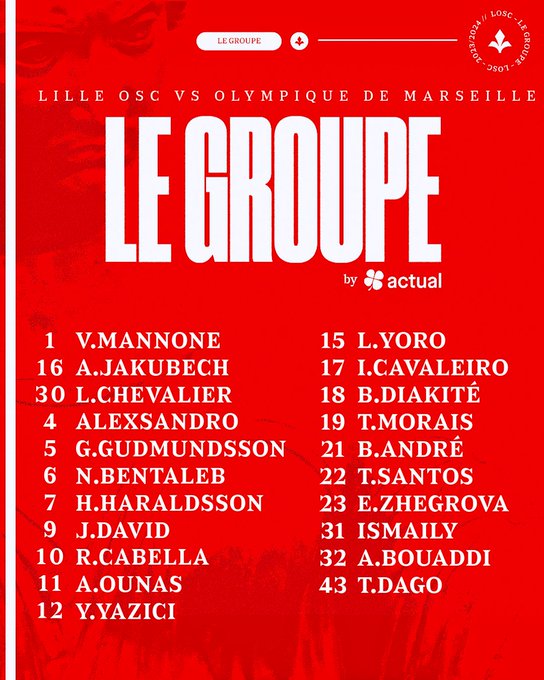 Derrière chaque performance sportive il y a toujours un travail collectif 🤝 Voici le groupe des joueurs qui défendront nos couleurs demain face à l'Olympique de Marseille 🔛 #LOSCOM #FaireEquipeEnsemble @GroupeACTUAL