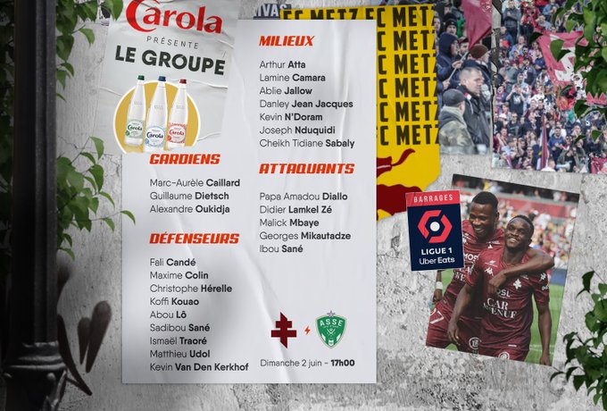 #FCMASSE [ ℙ𝕣𝕠 ] 🔥 Le 𝐠𝐫𝐨𝐮𝐩𝐞 𝐦𝐞𝐬𝐬𝐢𝐧 convoqué pour la réception de l’@ASSEofficiel est présenté par @EauCarola ⤵️