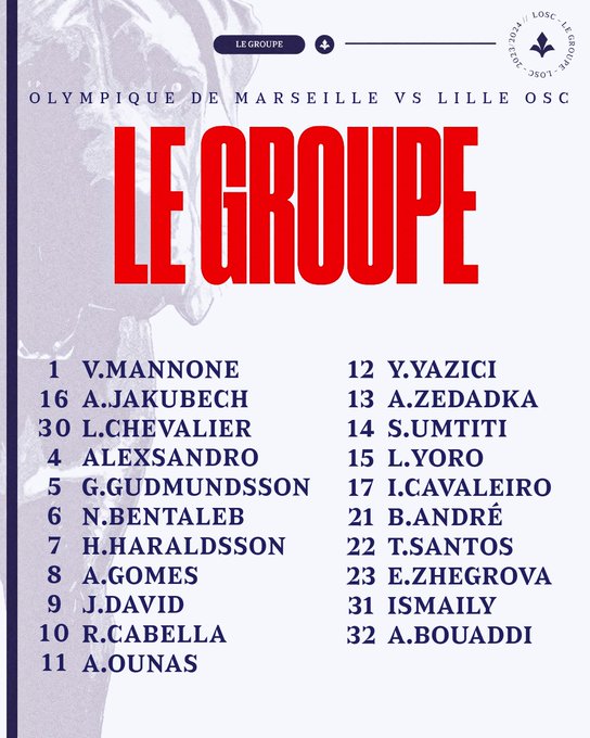 Veille de match pour nos Dogues ⌛️ Découvre le groupe de 21 joueurs qui se déplace à Marseille pour y affronter l'OM 👊⬇️ #OMLOSC