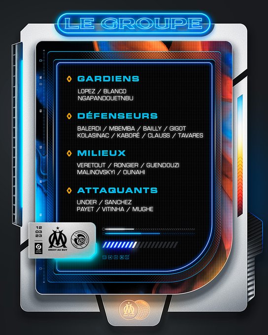 #OMRCSA ⏳ Les 2️⃣1️⃣ Olympiens convoqués par le coach 𝗜𝗴𝗼𝗿 𝗧𝘂𝗱𝗼𝗿 🇭🇷 pour la réception de Strasbourg ce soir à l’@orangevelodrome ! 🔥