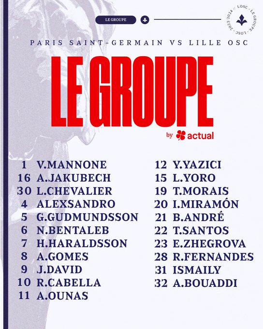 Voici le groupe retenu par Paulo Fonseca pour affronter Paris demain 👊 @GroupeACTUAL #PSGLOSC