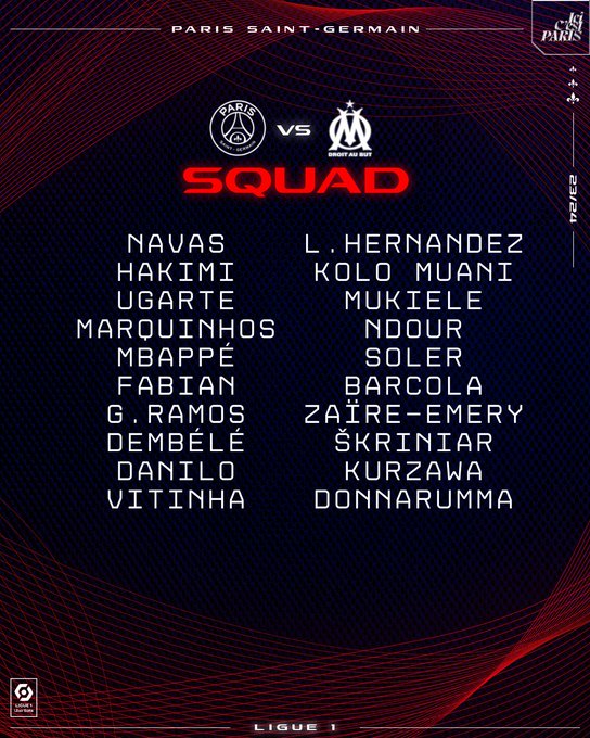 📝 Voici 𝗹𝗲 𝗴𝗿𝗼𝘂𝗽𝗲 olympien pour le déplacement à Paris ! ✈️ #PSGOM