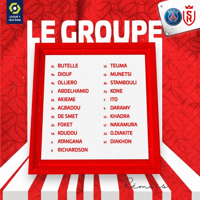 𝙑𝙚𝙞𝙡𝙡𝙚 𝙙𝙚 𝙢𝙖𝙩𝙘𝙝 ! 🔥 👀 Voici les 21 Rémois convoqués par Will Still pour affronter le @PSG_inside demain au Parc des Princes ! ⚔️ 🚑 Busi, Okumu #PSGSDR #GoSDR #NousSommesReims