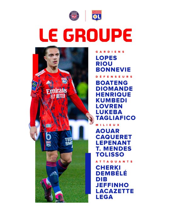 🦁 Notre coach Laurent Blanc a retenu un groupe de 21 joueurs pour le déplacement à Toulouse ce vendredi à 21h. 🔴🔵 #TFCOL