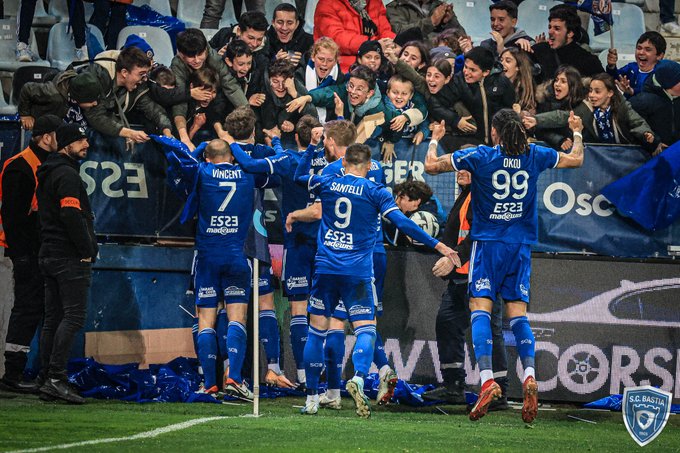 Festighjemu u but di Migouel Alfarela cù i zitelli turchini di a Tribuna Victor-Lorenzi ! 🔵 📸 #SCBACA