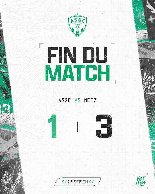 90e+4 : ⏹️ C’est terminé, fin de série pour les Verts qui s’inclinent avec des regrets… ☹️ Il faudra rebondir, à Rodez, le week-end prochain ! 💚 1-3 ⚫️ #ASSEFCM