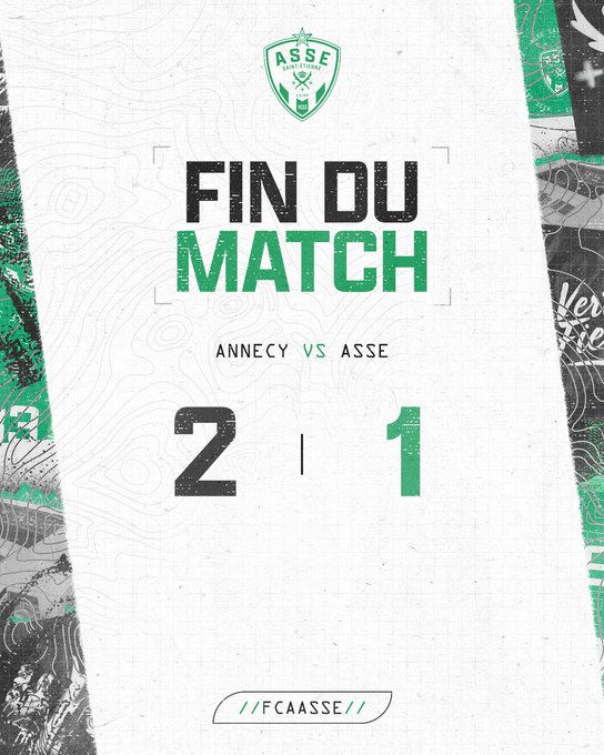 90e+5 : ⏹ Terminé à Annecy. 🔴 2-1 🖤 #FCAASSE