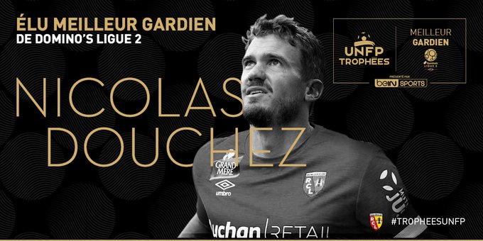 Doublé du @RCLens ! 🔥 Nicolas Douchez, lauréat du Trophée de meilleur gardien de @DominosLigue2 ! #TropheesUNFP