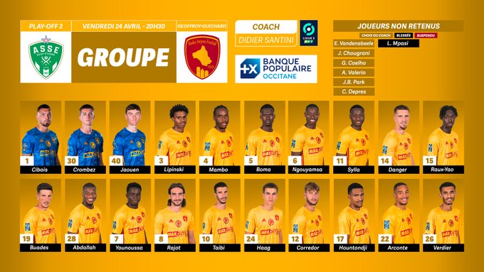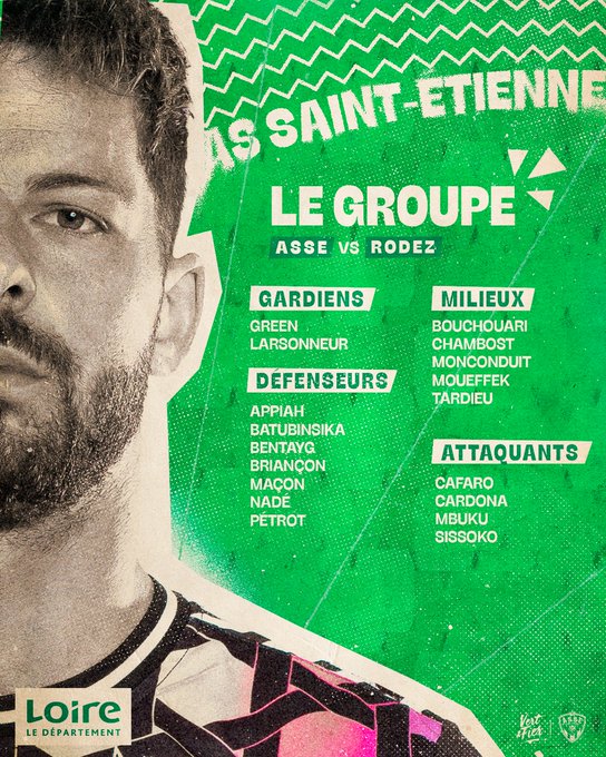 Longtemps en lutte pour finir à la deuxième place de la L2 derrière Auxerre, Sainté a craqué dans le sprint final en perdant contre QRM vendredi dernier (1-2). Finalement troisième du championnat à trois points d’Angers, l’ASSE va donc passer par les rattrapages pour jouer sa montée en L1. Pour ce match face à Rodez, un concurrent qui ne réussit pas aux Verts sachant que ces derniers n’ont jamais battu le RAF, Olivier Dall'Oglio pourra compter sur un groupe bien complet, avec la présence dans le groupe de Cardona, Larsonneur ou Monconduit.
