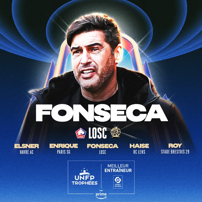 𝟰 𝘿𝙤𝙜𝙪𝙚𝙨 𝙣𝙤𝙢𝙢𝗲́𝙨 𝙖𝙪𝙭 𝙏𝙧𝙤𝙥𝙝𝗲́𝙚𝙨 𝙐𝙉𝙁𝙋 ! 👏 Paulo Fonseca nommé pour être élu meilleur entraîneur de @Ligue1UberEats, Edon Zhegrova meilleur joueur, Lucas Chevalier meilleur gardien et Leny Yoro meilleur espoir ! Rendez-vous le 13 mai prochain pour les