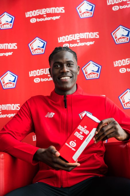 Amadou Onana a reçu son trophée de Dogue du Mois de Janvier by @boulanger 🏆