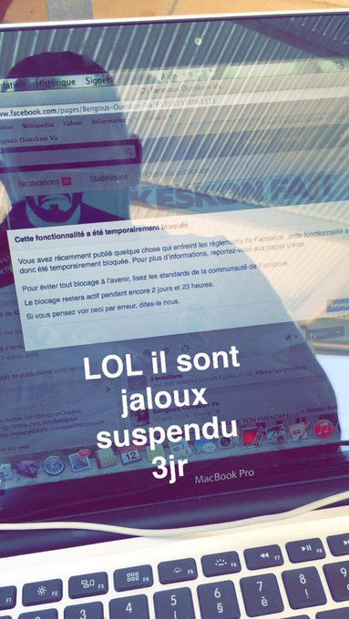 Je suis suspendu de Facebook pendant 3 jours par rapport Ala vidéo de Valbuena maaafoiiiiii #SfairEnculerValbuena