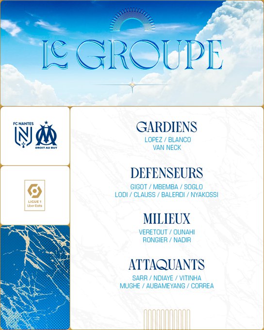 👥 #FCNOM Les 2️⃣0️⃣ joueurs retenus par Marcelino pour le déplacement à Nantes 🌋