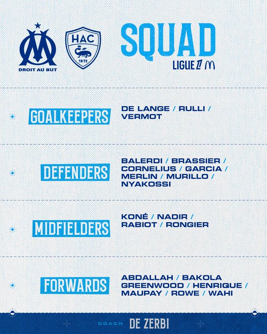 𝐒𝐐𝐔𝐀𝐃 📋 Voici les 2️⃣1️⃣ marseillais convoqués par 𝗥𝗼𝗯𝗲𝗿𝘁𝗼 𝗗𝗲 𝗭𝗲𝗿𝗯𝗶 🇮🇹 pour la réception du Havre 💪 #OMHAC