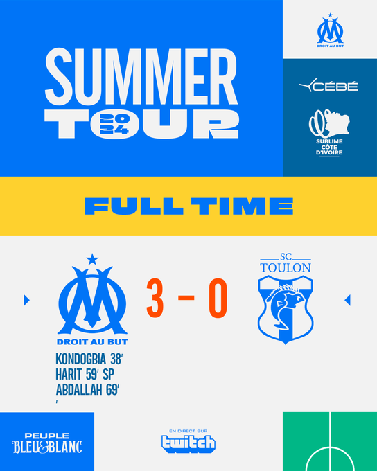 ⏱️ 90’ | #OMSCT 3️⃣-0️⃣ Première victoire de nos Olympiens dans la préparation estivale de la saison 2024-2025 🗓️ RDV samedi 27 juillet à 18 heures pour le 3e match de préparation 🆚 Pau FC
