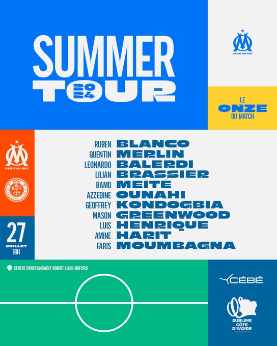 𝙇𝘼 𝘾𝙊𝙈𝙋𝙊 #OMPauFC Le onze de départ aligné par coach Roberto De Zerbi 🇮🇹 pour le troisième match de préparation contre le Pau FC ⚽️