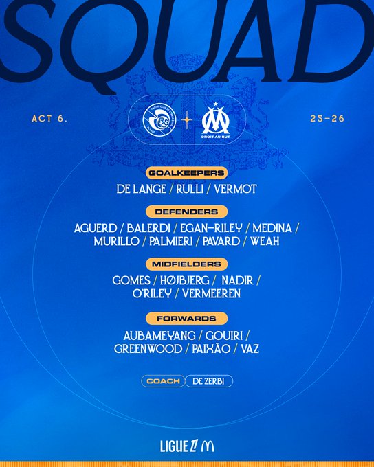 𝐒𝐐𝐔𝐀𝐃 𝐋𝐈𝐒𝐓 📋 #RCSAOM Les 2️⃣1️⃣ joueurs retenus par 𝗥𝗼𝗯𝗲𝗿𝘁𝗼 𝗗𝗲 𝗭𝗲𝗿𝗯𝗶 🇮🇹 pour le déplacement à la Meinau ce soir ⚔️
