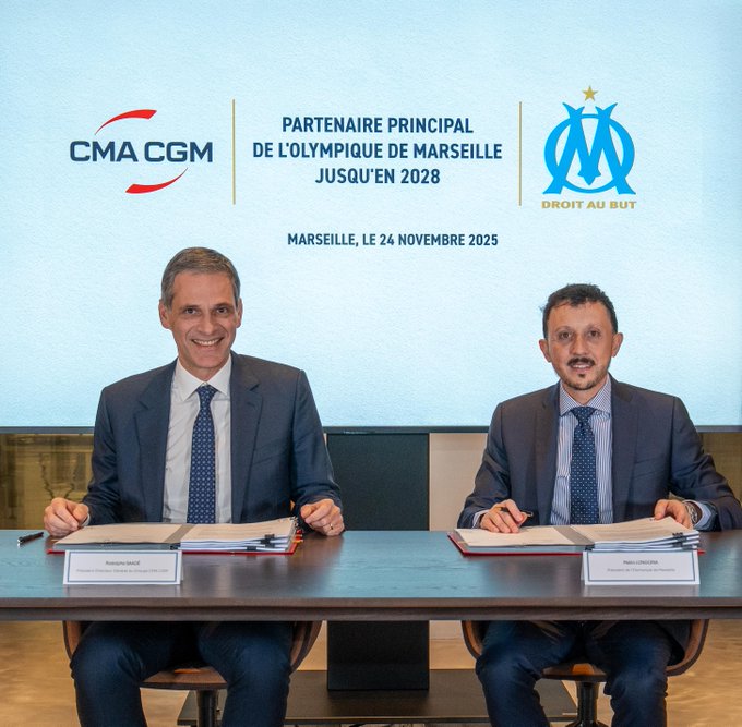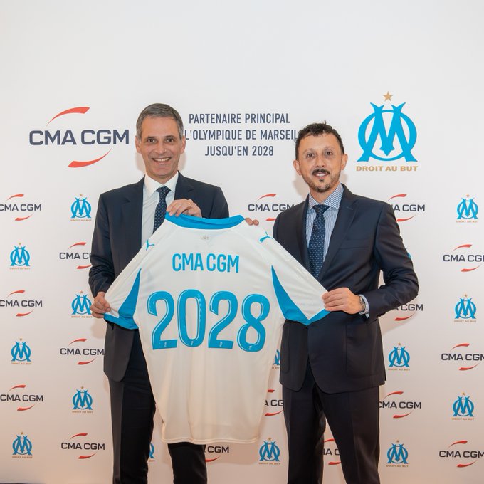 C’est la passion qui nous transporte : 2028 à l'horizon pour CMA CGM et l'OM ! 🤝🔵⚪ Après 3 premières saisons ensemble, CMA CGM reste partenaire principal de l’@OM_officiel, présent sur le maillot de toutes les équipes. En savoir plus : cmacgm-group.com/fr/actualites-… #CMACGMxOM