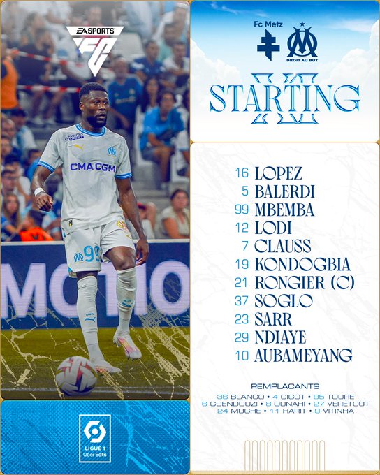 𝗟𝗔 𝗖𝗢𝗠𝗣𝗢𝗦𝗜𝗧𝗜𝗢𝗡 👨🍳📝 #FCMOM Le 𝗫𝗜 𝗱𝗲 𝗱𝗲́𝗽𝗮𝗿𝘁 aligné par 𝑀𝑎𝑟𝑐𝑒𝑙𝑖𝑛𝑜 🇪🇸 pour cette 2ème journée de @Ligue1UberEats ! 👊