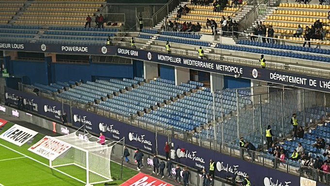 #MHSCOM les supporters marseillais ne seront pas présents ce soir à la Mosson. Il semble qu’ils étaient plus nombreux que prévu par rapport au faible nombre de places attribuées (450) en parcage. Accrochages avec la police…puis un retour à Marseille…triste @OM_Officiel #TeamOM