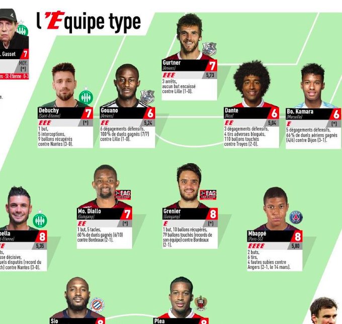 Première titu en Ligue 1 pour @boubaKamara_4 ... et première présence dans @lequipe type. Pas le temps...