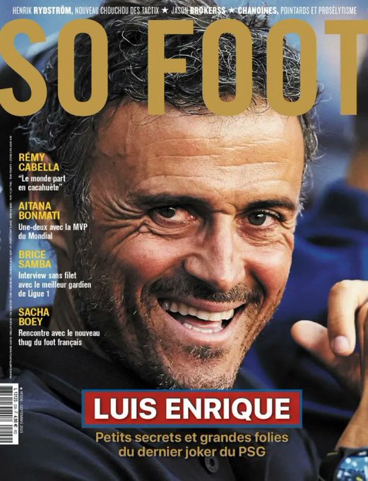 Des doux, des dingues, des durs, des thugs, des écorchés vifs, des révolutionnaires, des sadomasochistes, des MVP et même des Moines pas très catholiques. @sofoot est en kiosque et il est brûlant. #sofoot #sopress #luisenrique #luispadrique #cabella #bonmati #samba #kiff
