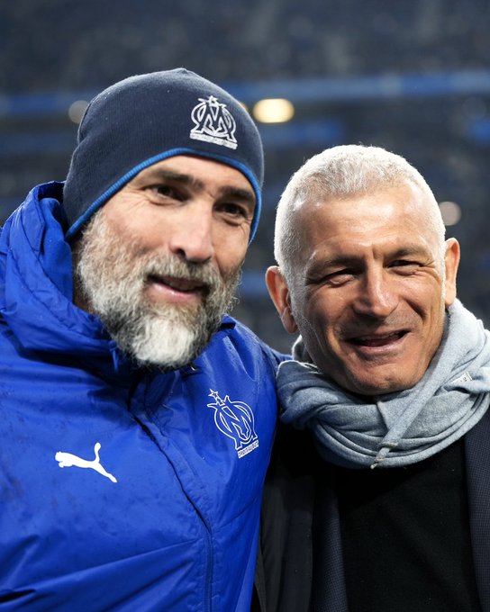 𝐓𝐨𝐮𝐬 𝐥𝐞𝐬 𝐜𝐡𝐞𝐦𝐢𝐧𝐬 𝐦𝐞̀𝐧𝐞𝐧𝐭 𝐚̀ l’Orange Vélod𝐫𝐨𝐦𝐞 🏟 📸 Notre coach 𝙄𝙜𝙤𝙧 𝙏𝙪𝙙𝙤𝙧 et la légende olympienne 𝙁𝙖𝙗𝙧𝙞𝙯𝙞𝙤 𝙍𝙖𝙫𝙖𝙣𝙚𝙡𝙡𝙞, de retour hier à la maison 🔵⚪️