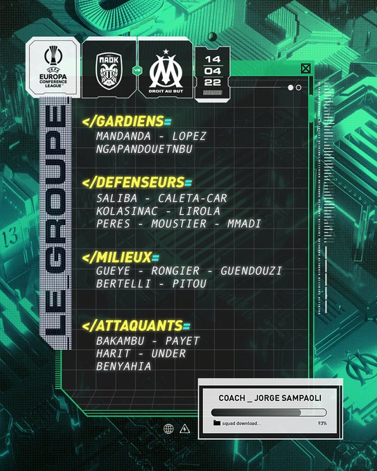 Jorge Sampaoli a officialisé son groupe pour le match de jeudi en Grèce, et mauvaise nouvelle pour l'Olympique de Marseille, Arkadiusz Milik est finalement absent.