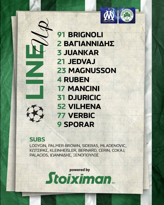 Our line-up for today's @ChampionsLeague game! #Panathinaikos #PAOFC #ΟΜPAO #UCL