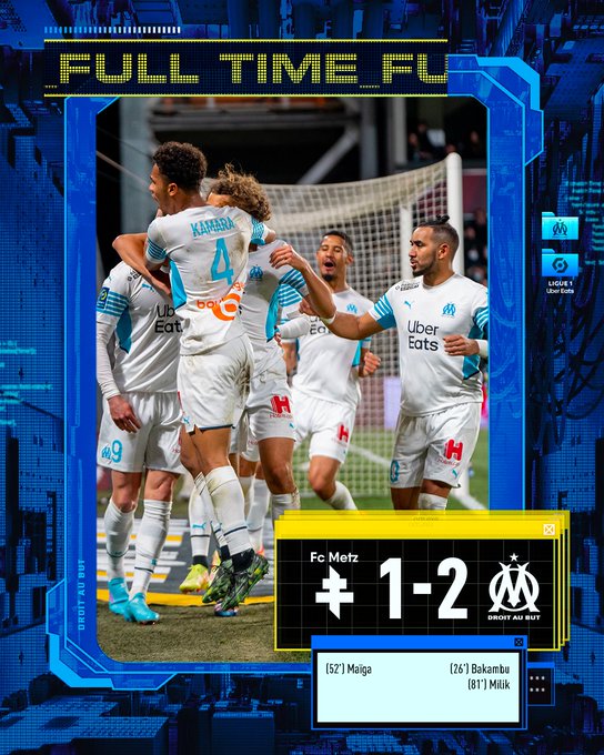 ⏱94’ | #FCMOM 1️⃣-2️⃣ 𝗖’𝗲𝘀𝘁 𝘁𝗲𝗿𝗺𝗶𝗻𝗲́ 𝗮̀ 𝗠𝗲𝘁𝘇 : +3️⃣ points pour nos Olympiens grâce à des réalisations de @Bakambu17 et d'@arekmilik9 ! 💪