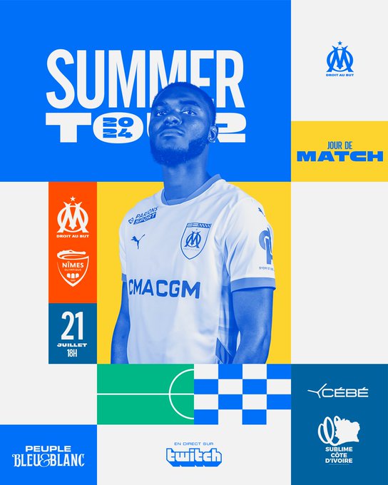 𝙅𝙤𝙪𝙧 𝙙𝙚 𝙢𝙖𝙩𝙘𝙝 🗓 #OMNO Première étape du #SummerTour2024 pour les hommes de Roberto De Zerbi avec la réception de Nîmes 🐊 📍 Centre Robert Louis-Dreyfus (huis-clos) 🕕 18h00 📺 En direct pour les 𝘀𝘂𝗯𝘀 𝗧𝘄𝗶𝘁𝗰𝗵 et les membres 𝗣𝗲𝘂𝗽𝗹𝗲 𝗕𝗹𝗲𝘂&𝗕𝗹𝗮𝗻𝗰