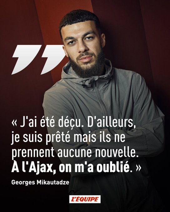 L'Ajax, une vraie cicatrice dans la carrière de Georges Mikautadze, le Géorgien nous révèle qu'a son arrivée à Amsterdam il a du vivre deux mois à l'hôtel, il n'a jamais su s'intégrer dans le club hollandais ow.ly/H5WQ50RknkS