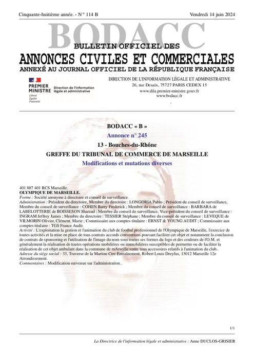 #VENTEOM Du mouvement publié hier le 14 juin 2024.... Ca bouge Source BODACC, l'extrait du document sera bientôt publié