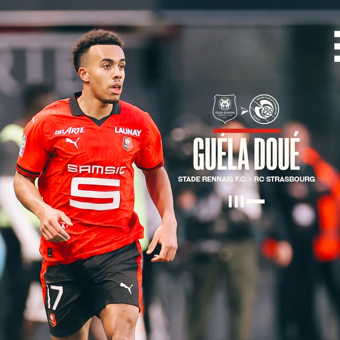Guéla Doué transféré au @RCSA ✍️ Rouge et Noir formé au club, Guéla Doué aura gravi tous les échelons jusqu’à défendre nos couleurs en équipe première. Le SRFC tient à remercier Guéla et lui souhaite une belle réussite. 🤝