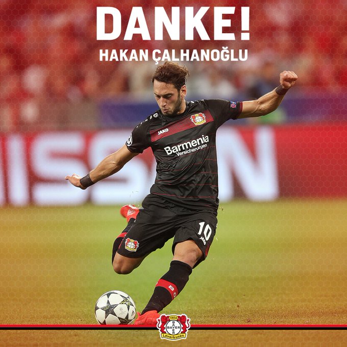Viel Erfolg beim @acmilan! 👋 @hakanc10 verlässt #Bayer04. 👉 bayer04.de/B04-DEU/de/_md… Wir wünschen dir alles Gute, Hakan!