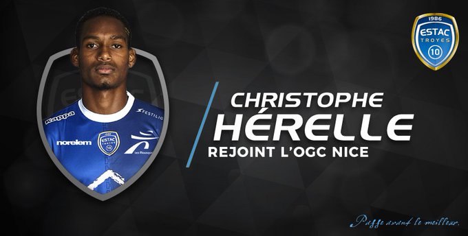 [#OFFICIEL] Après deux belles saisons passées à Troyes, @ChrisHerelle quitte l'Estac. Il s’engage avec l’@ogcnice et poursuivra ainsi sa progression en @Ligue1Conforama. Bonne route et à bientôt Chris, la #TeamESTAC est fière de toi ! ➡ bit.ly/2MKM9vg