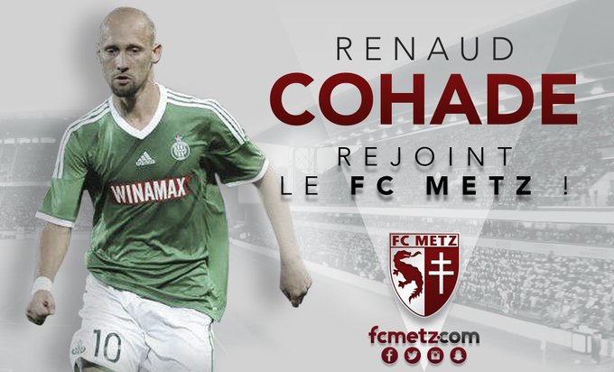 Après quatre années sous le maillot de l’AS Saint-Étienne, Renaud Cohade va découvrir un nouveau challenge à partir de la saison prochaine. Dans les petits papiers depuis plusieurs jours, son arrivée au FC Metz est désormais officielle. Le milieu de terrain de 31 ans a trouvé un accord avec les Verts pour se libérer de son contrat et arrive donc en joueur libre. Cohade, qui a signé un contrat de 3 ans, intégrera le groupe messin la semaine prochaine après le stage à Carnac.