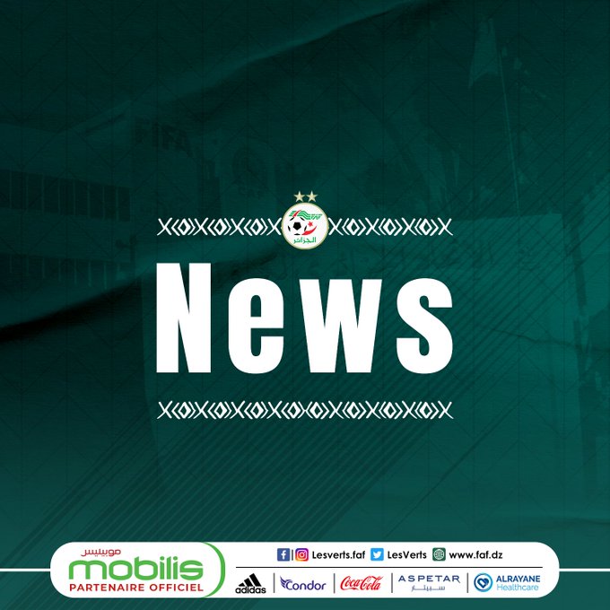 📌يعلم الاتحاد الجزائري لكرة القدم، أن الطعن الذي تقدم به أمام لجنة الانضباط التابعة للاتحاد الدولي لكرة القدم "فيفا"، والخاص بمواجهة المنتخب الوطني ونظيره الكامروني ضمن إياب مباريات الدور الفاصل المؤهل لكأس العالم قطر 2022، ستتم مناقشته يوم الخميس 21 أفريل الجاري.