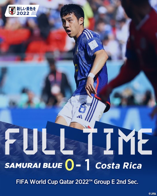 ⚽️試合終了⚽️ 🏆FIFA #ワールドカップ 第2節 🇯🇵#SAMURAIBLUE 0-1 コスタリカ代表🇨🇷 ⌚️19:00KO(🇯🇵) 📺#テレビ朝日/#ABEMA 🔗jfa.jp/samuraiblue/ #jfa #daihyo #サッカー日本代表 #つな超え #新しい景色を2022 #worldcup #FIFAWorldCup