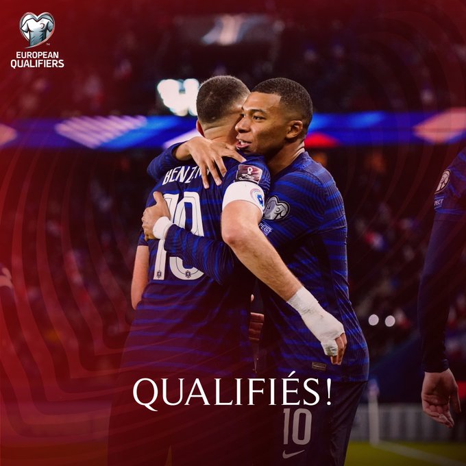 👏👏👏 🇫🇷 qualifiée pour la Coupe du Monde 2022 #EQ #WC2022 🐓 Le tenant défendra son 🏆 🤩 @equipedefrance ⭐⭐ #FRAKAZ
