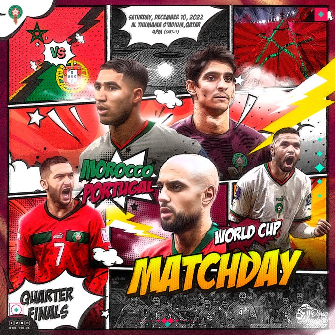 ๐จ ๐๐ง'๐ฆ ๐ ๐๐ง๐๐๐๐๐ฌ ๐ #FIFAWorldCup Quarter Finals ๐ Portugal ๐ต๐น ๐๏ธ Al Thumama Stadium, Qatar โฐ 4PM (GMT+1) #DimaMaghrib ๐ฒ๐ฆ #TeamMorocco #FIFAWorldCup @pumafootball