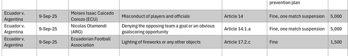 🚨#ALERTA | Oficial: Nicolás #Otamendi recibió una fecha de suspensión y se perderá el debut en el #Mundial2026 📌El defensor de la #SelecciónArgentina fue expulsado en el último encuentro de Eliminatorias ante Ecuador
