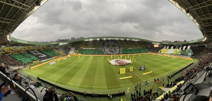 Un tifo en la mémoire des nôtres. Pour toujours dans les coeurs des Nantais. 🙏 Merci au peuple jaune et vert pour ce sublime hommage.