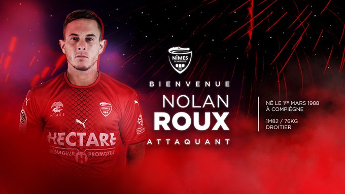 Le Nîmes Olympique est fier et heureux de vous annoncer l'arrivée de Nolan Roux. Passé par Brest, Lille, Saint-Etienne, Metz et Guingamp, il rejoint le NO jusqu'à la fin de la saison. Bienvenue Nolan ! #CrocoDeal